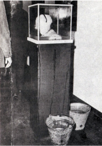 En 1970 fue centro de atención en los diarios de la época y fue protagonista de las miradas expectantes con esta obra. Caro, representó la cabeza del político con un bulto de sal y unas gafas, dentro de un recipiente de cristal sobre un pedestal.